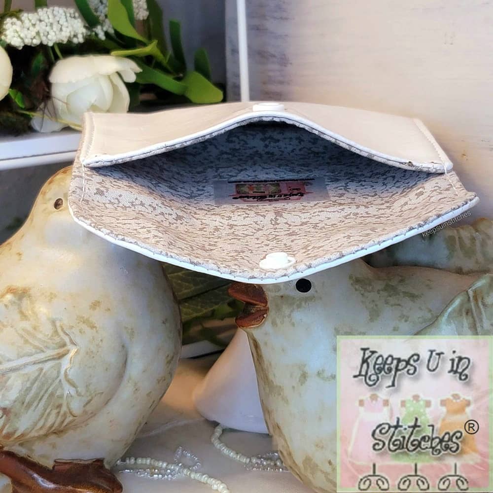 - Keeps U in Stitches® handmade custom items are created with the utmost care and utilize dedicated professional cylinder arm and flatbed walking foot sewing machines, in addition to embroidery machines, to craft our custom handmade bags and wallets. Although we strive for perfection, our items are handmade, therefore, there may be slight imperfections that are not considered flaws, but add to the charm and uniqueness of your handmade item.